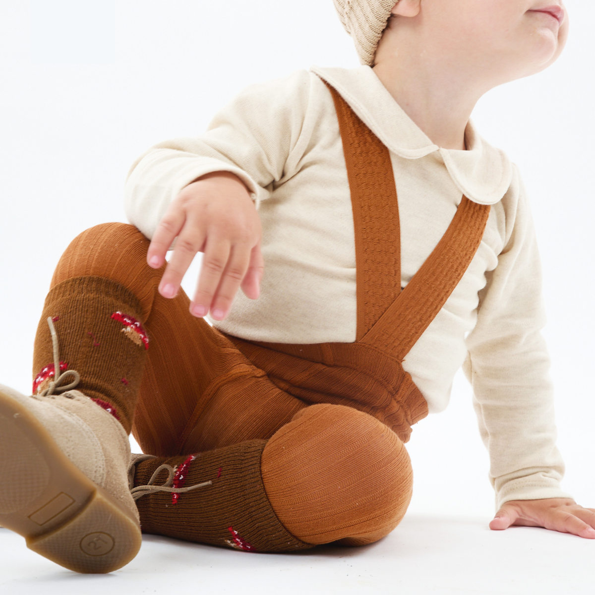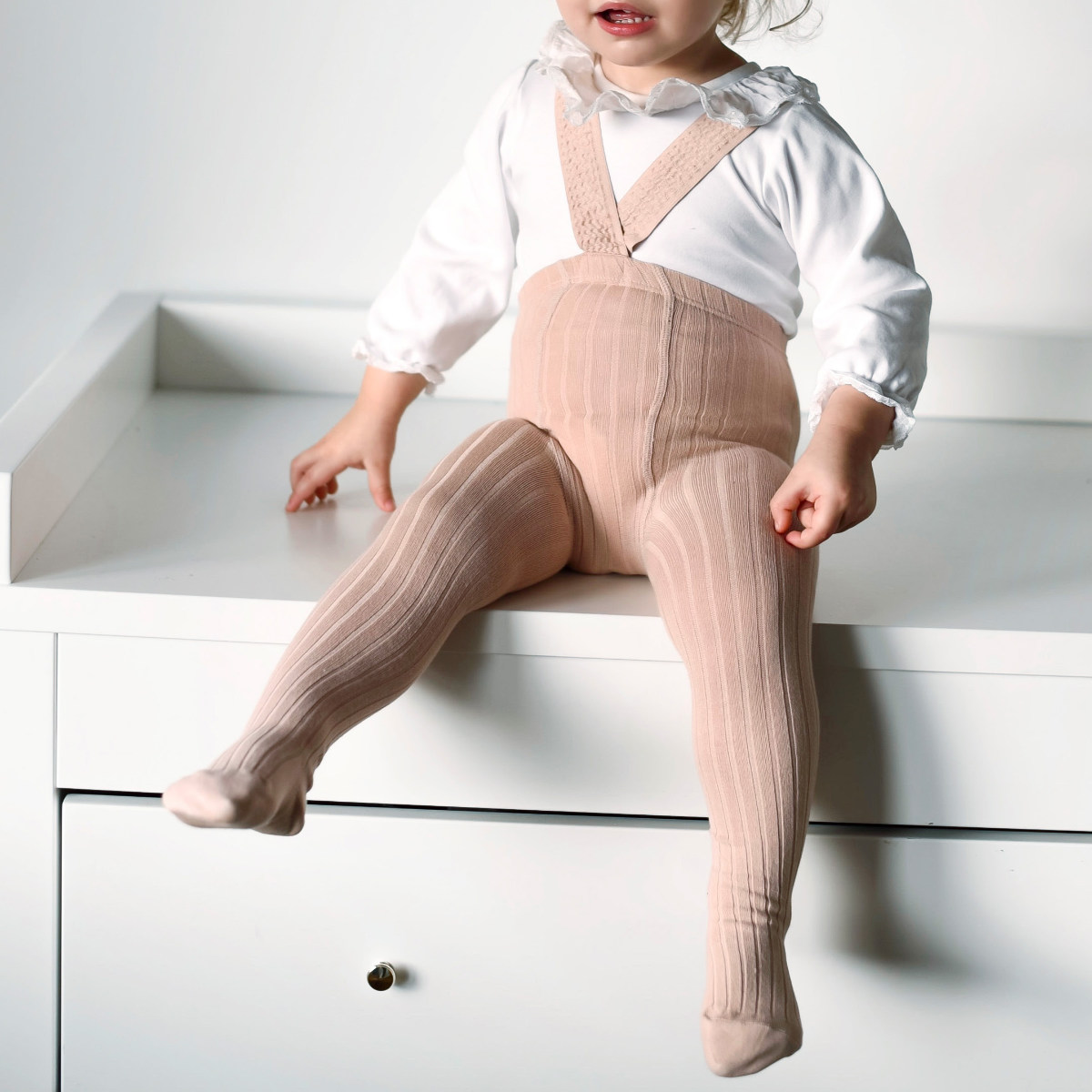 Rib tights with elastics suspenders