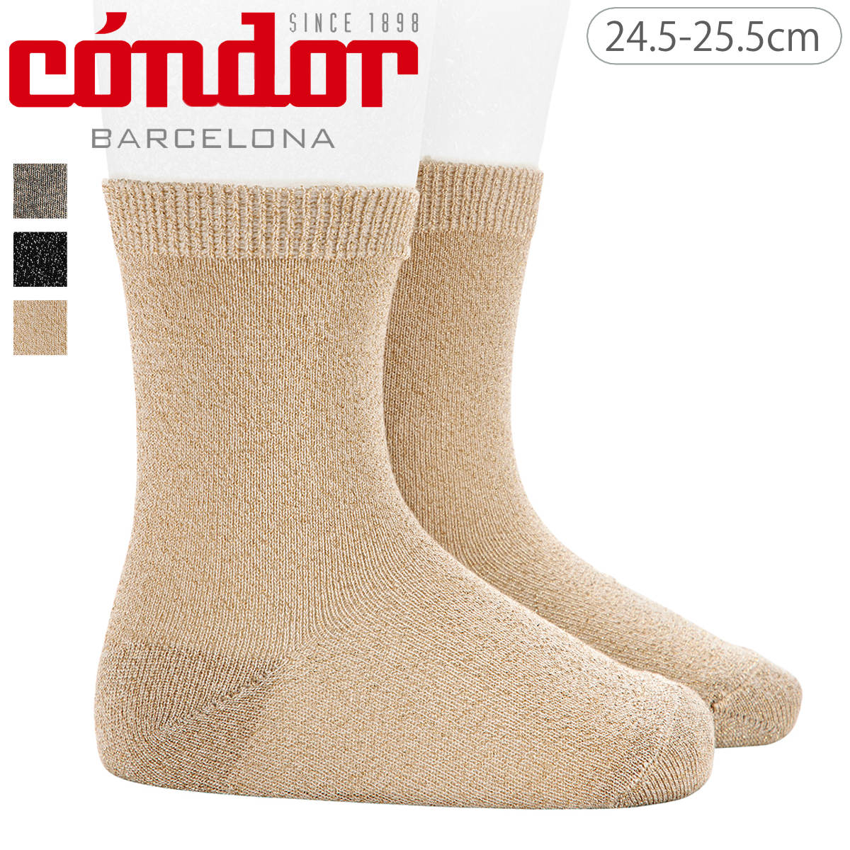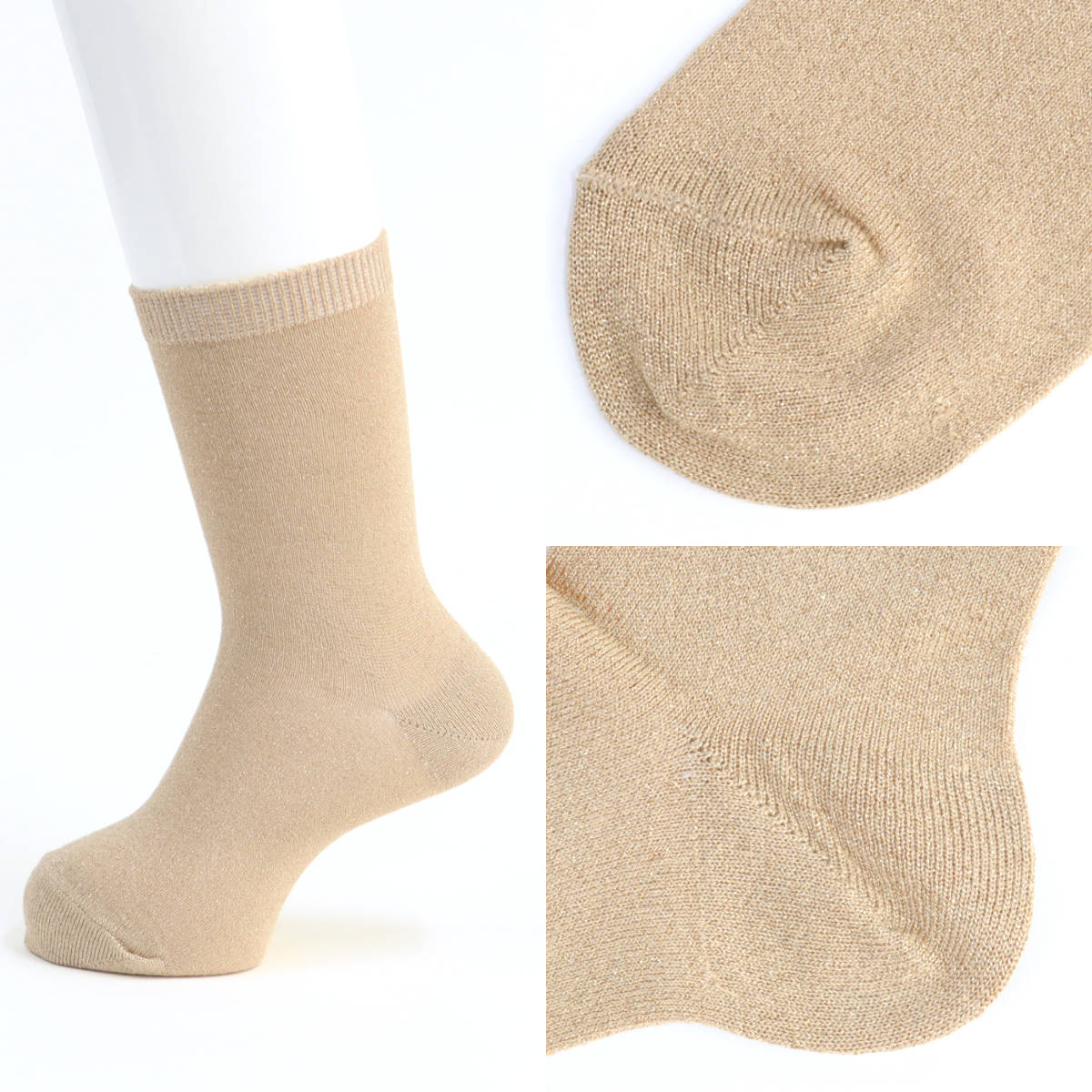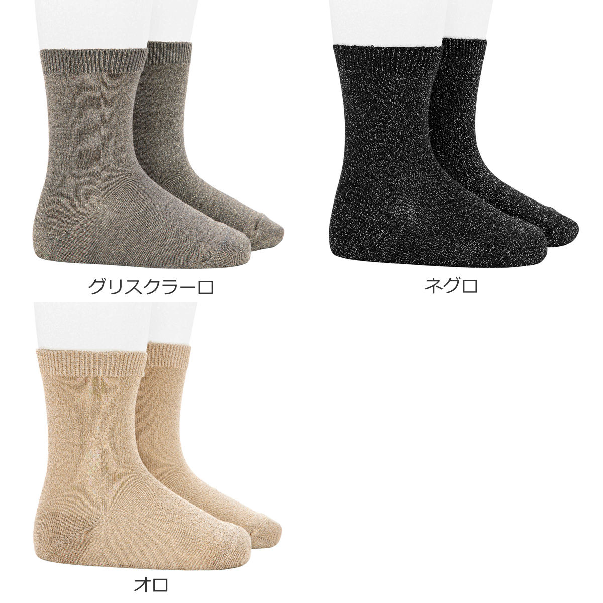 メタリックファイバーを編み込んだ、上品な煌めきのあるショートソックスです。一般的なメタリックファイバーより細めのファイバーを使用しています。